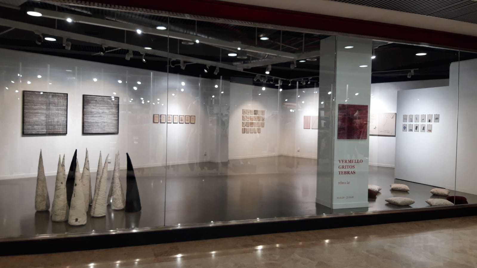 Vermello, gritos, tebras es una muestra multidisciplinar que indaga en el proceso creativo entendido como método investigador. Las obras presentadas trabajan con el texto (material y concepto) de formas variadas: con la caligrafía digital y las palabras tejidas, con fragmentos poéticos propios y definiciones lingüísticas…